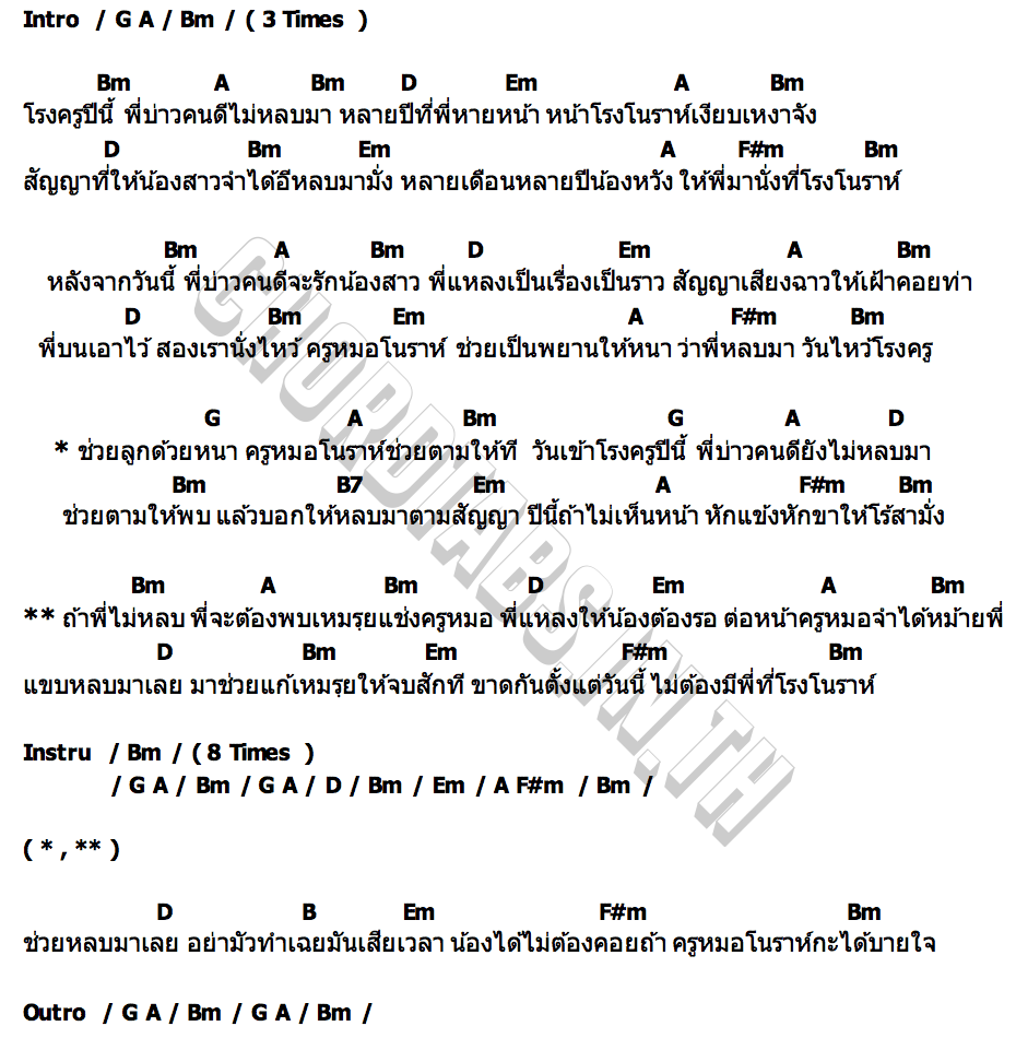 คอร์ดเพลง ครูหมอโนราห์