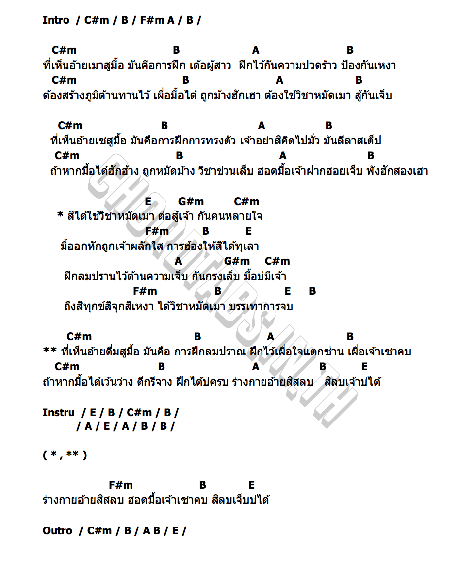 เนื้อเพลง วิชาหมัดเมา วีระยุทธ ก้องกังวาล