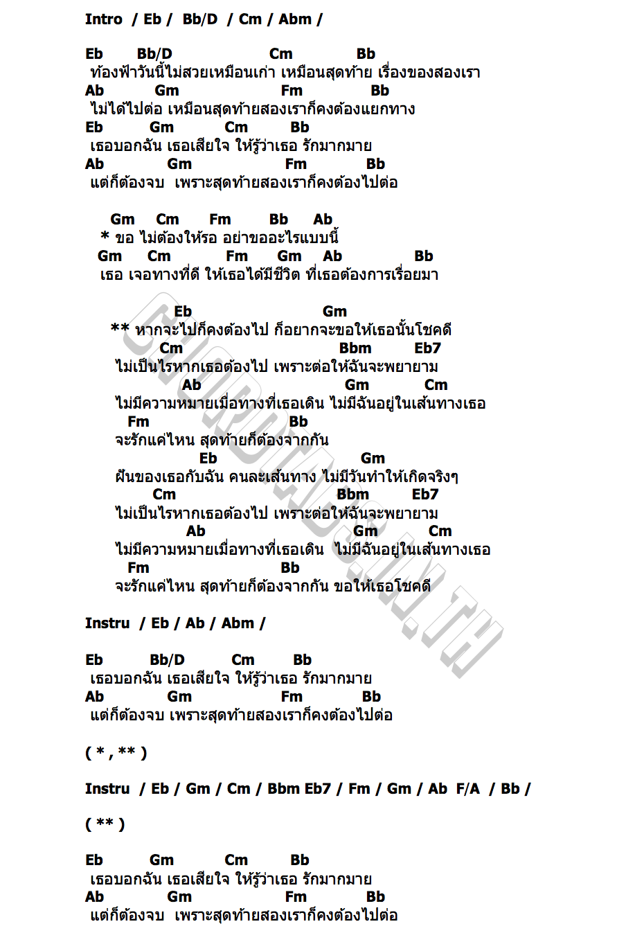 ไม่มีความหมายเมื่อทางที่เธอเดิน ไม่มีฉันอยู่ในเส้นทางเธอ