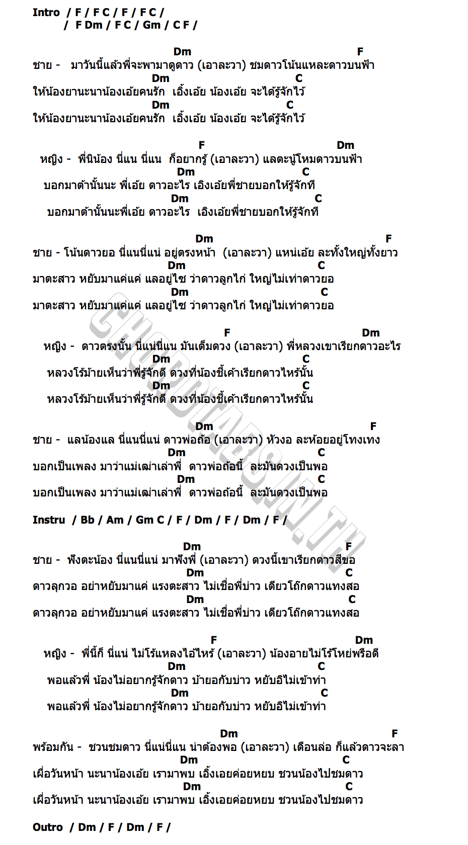 คอร์ดเพลง ชวนน้องชมดาว