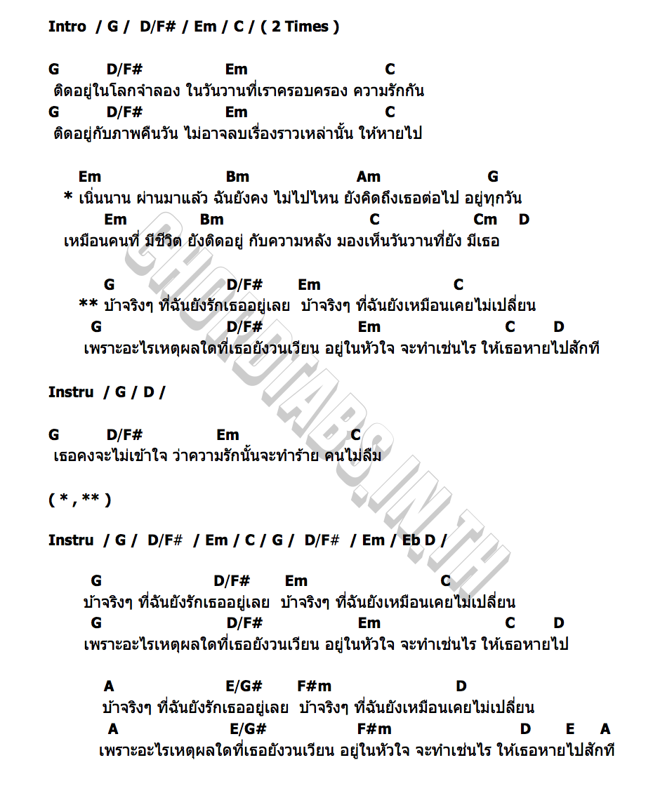 บ้าจริงคอร์ด | คอร์ด บ้าจริง เสมือนฝัน