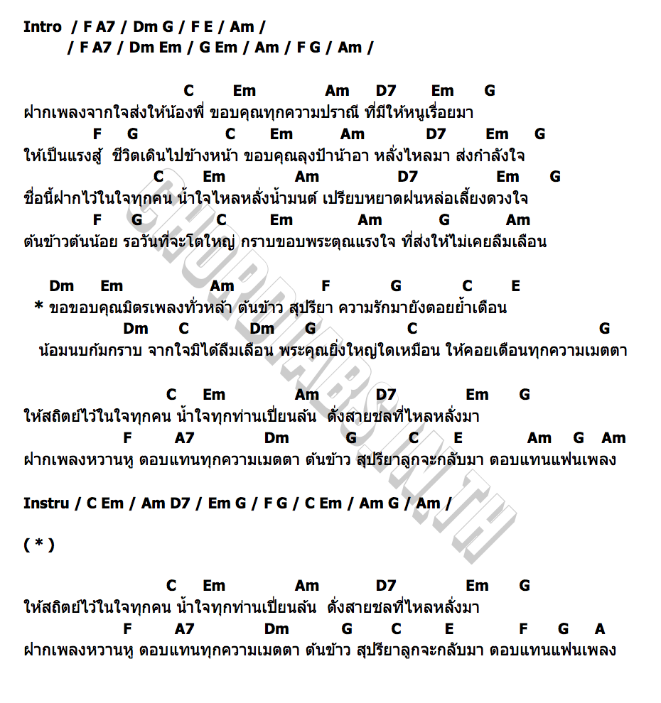 เนื้อเพลง จากใจต้นข้าว ต้นข้าว สุปรียา