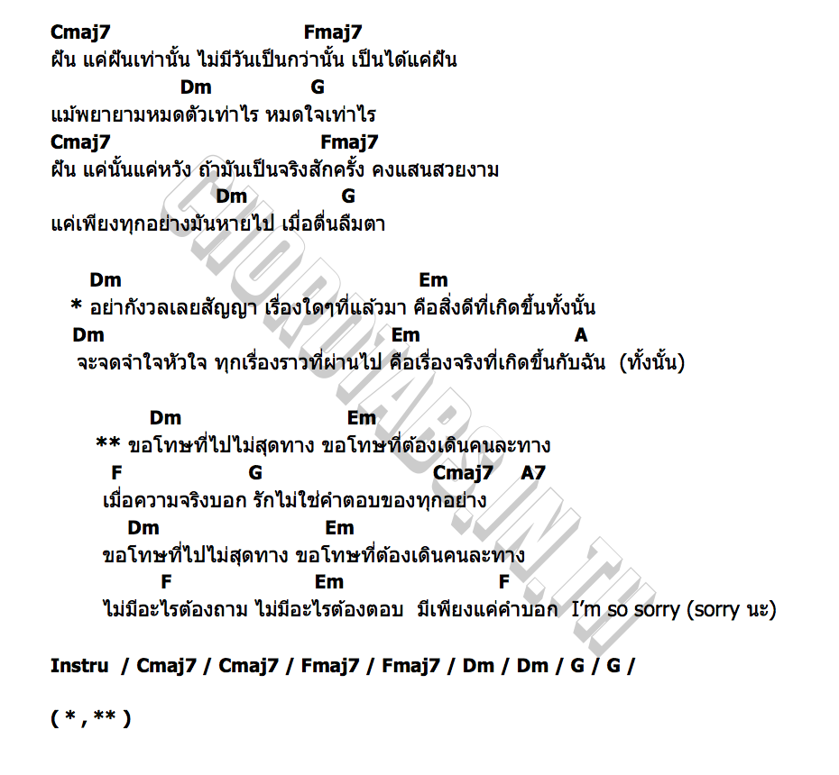 Sorryคอร์ด | คอร์ด Sorry Wasin featuring Es Chainarong