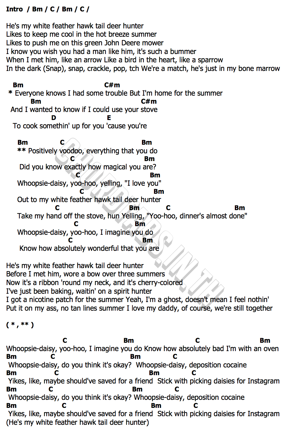 คอร์ด White Feather Hawk Tail Deer Hunter Lana Del Rey