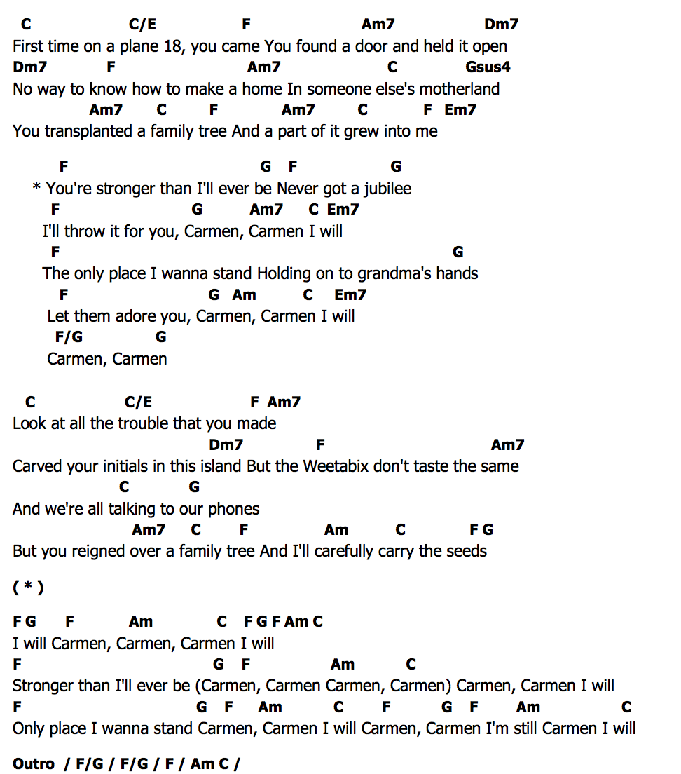 Only place I wanna stand Carmen, Carmen I will Carmen, Carmen I'm still Carmen I will
