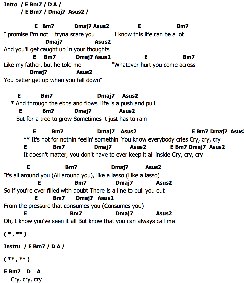 It doesn't matter, you don't have to ever keep it all inside Cry, cry, cry