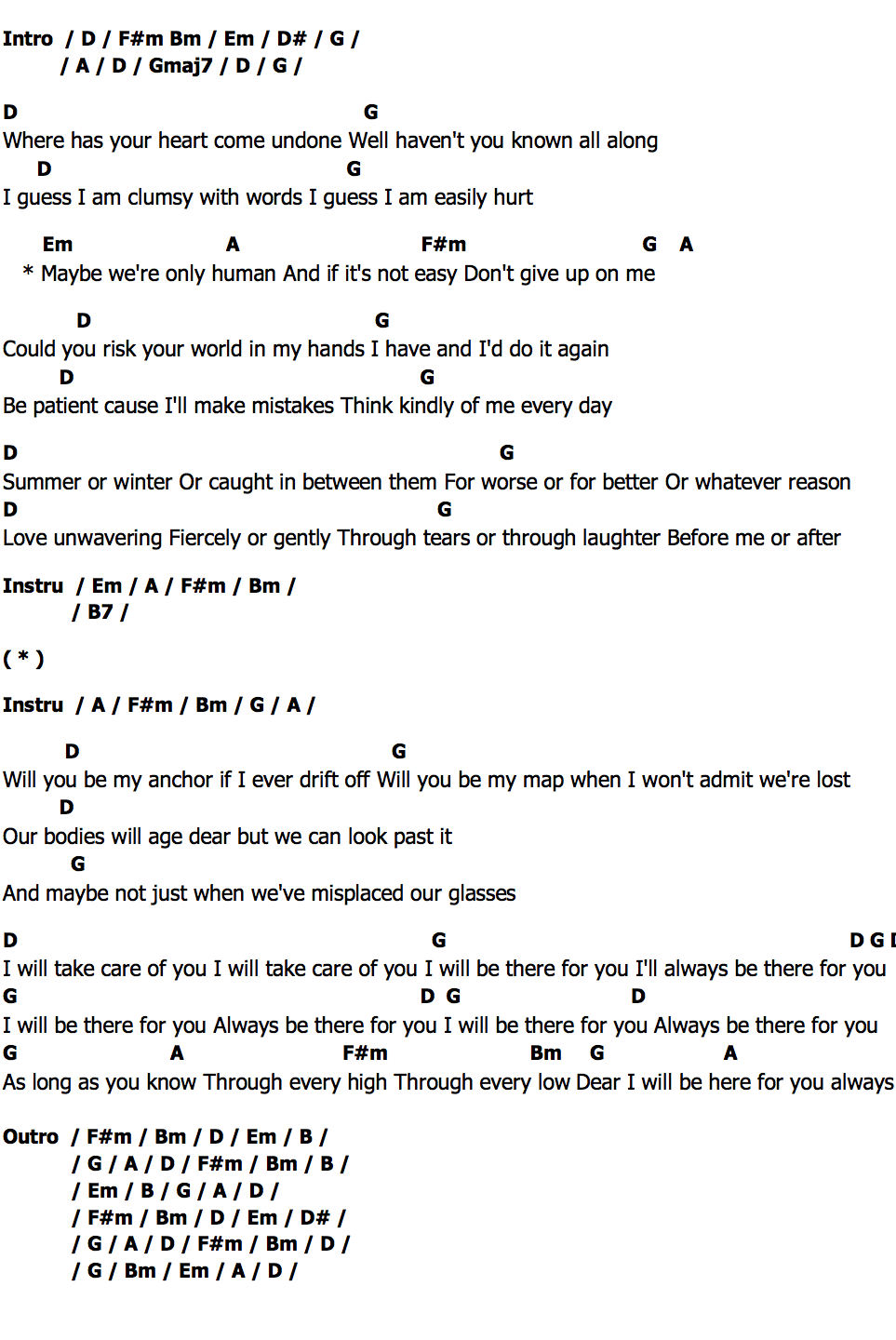 * Maybe we're only human And if it's not easy Don't give up on me
