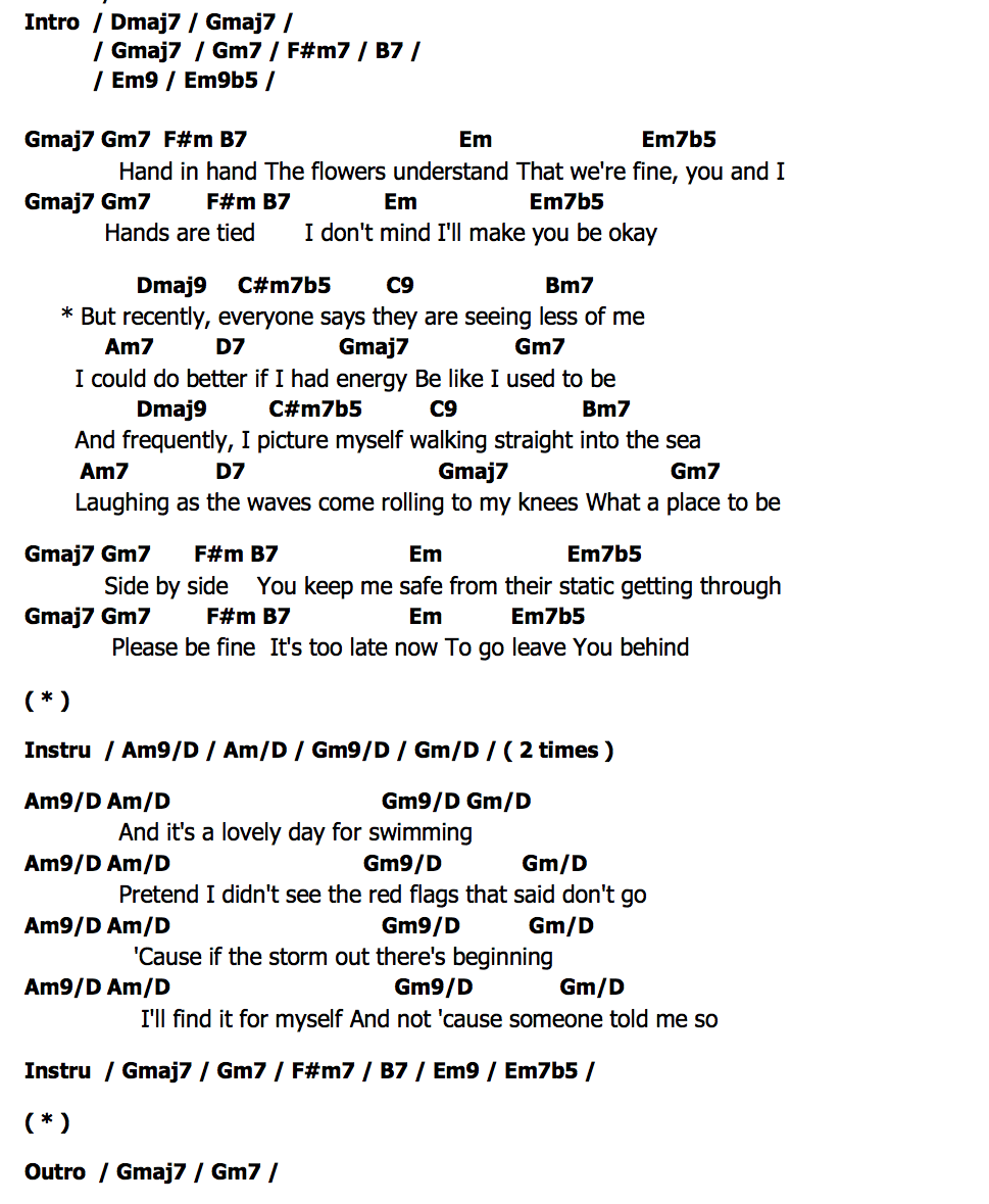 Hand in hand The flowers understand That we're fine, you and I