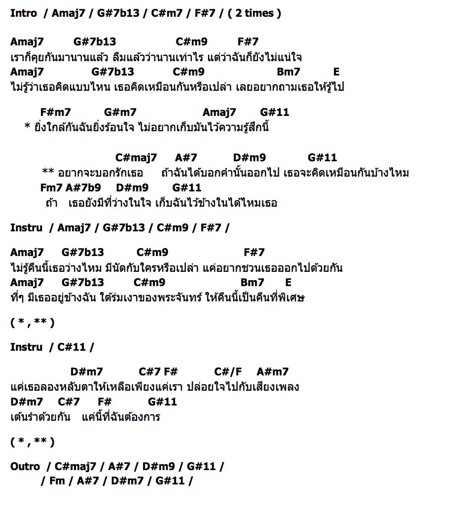 คอร์ดเพลง คืนนี้เธอว่างไหม (Tonight I ว่างนะ)