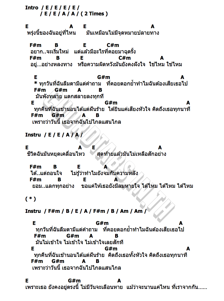 คอร์ดเพลง พรุ่งนี้หายไป
