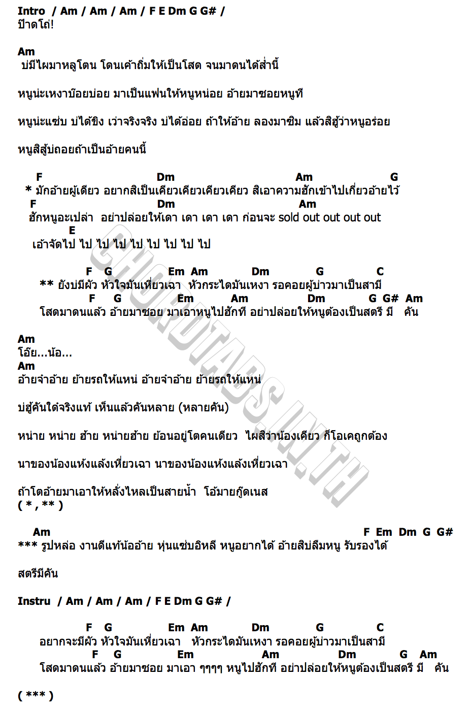 คอร์ดเพลง ผู้หญิงหลายผัว