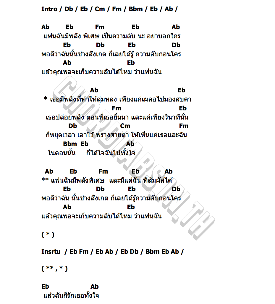 เนื้อเพลง ซูเปอร์แฟน คุณชม