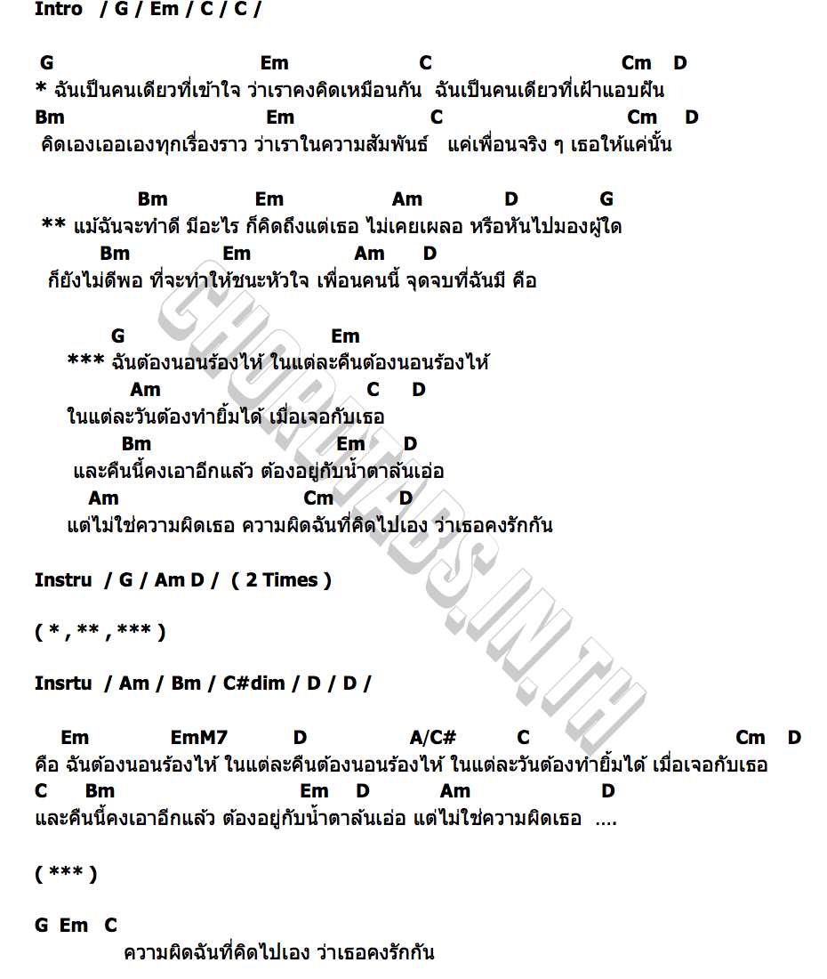 ฉันต้องนอนร้องไห้คอร์ด | คอร์ด ฉันต้องนอนร้องไห้ BNK48
