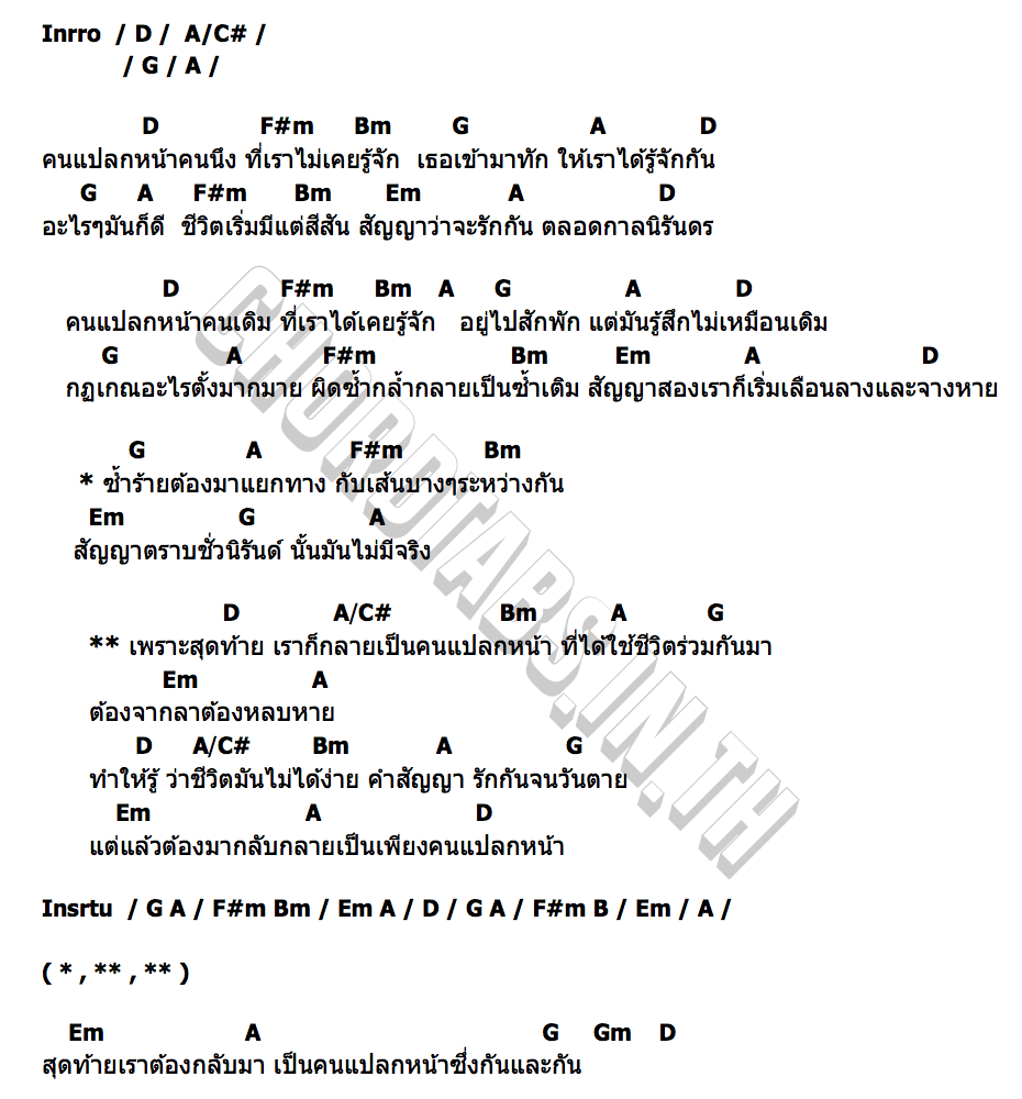 คอร์ดเพลง คนแปลกหน้าที่คุ้นเคย