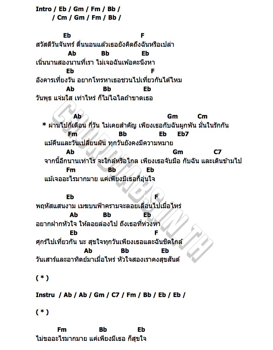 อังคาร เที่ยงวัน อยากโทรหาเธอชวนไปเที่ยวกันได้ไหม วันพุธ แจ่มใส เท่าไหร่ ก็ไม่ไฉไลถ้าขาดเธอ