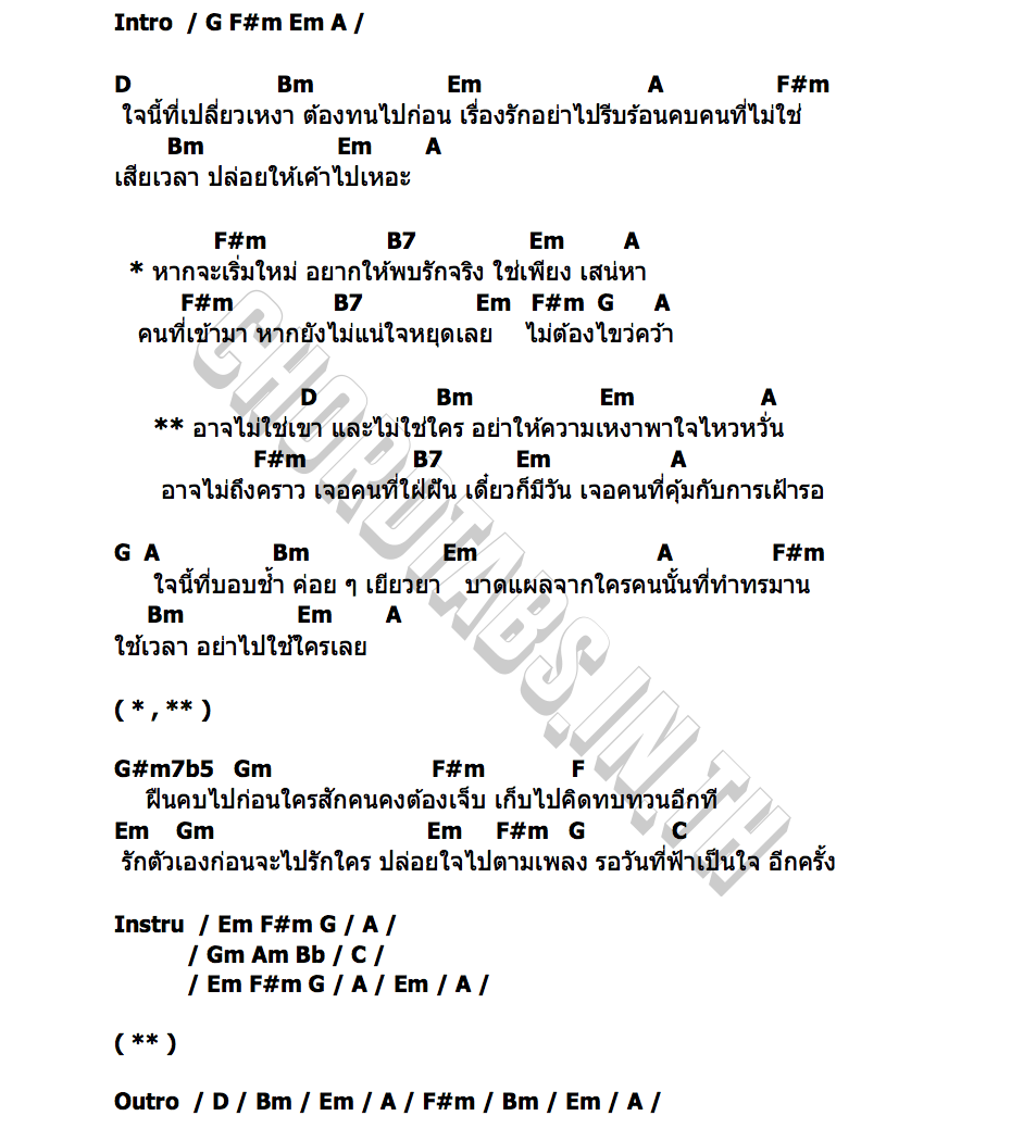 คอร์ดเพลง รอเธอจนหายเปียกปอน (dry my tears)
