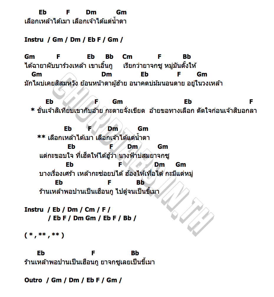 เลือกเหล้าได้เมา เลือกเจ้าได้แต่น้ำตา