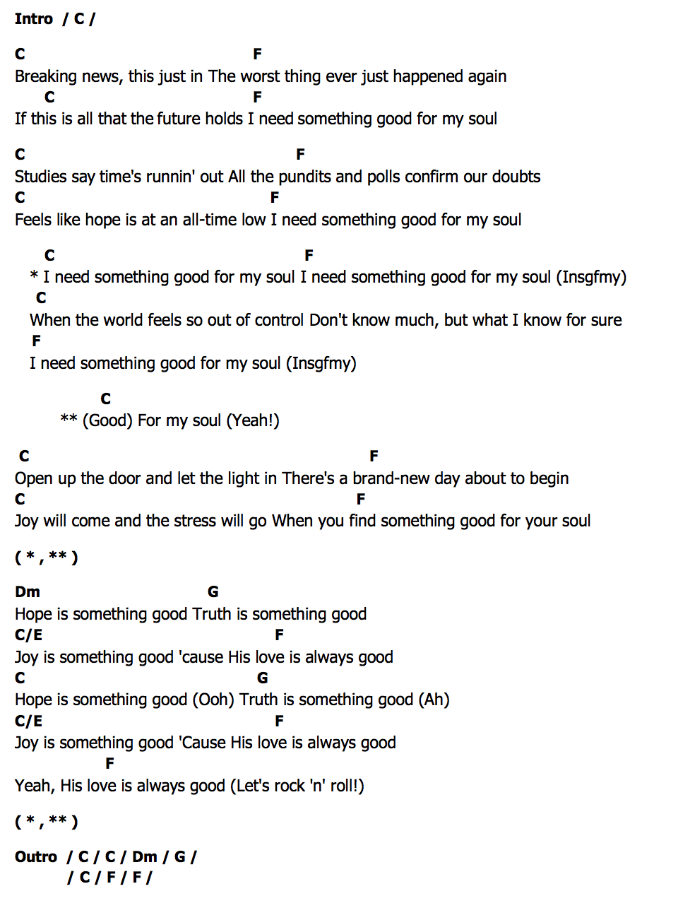 * I need something good for my soul I need something good for my soul (Insgfmy)