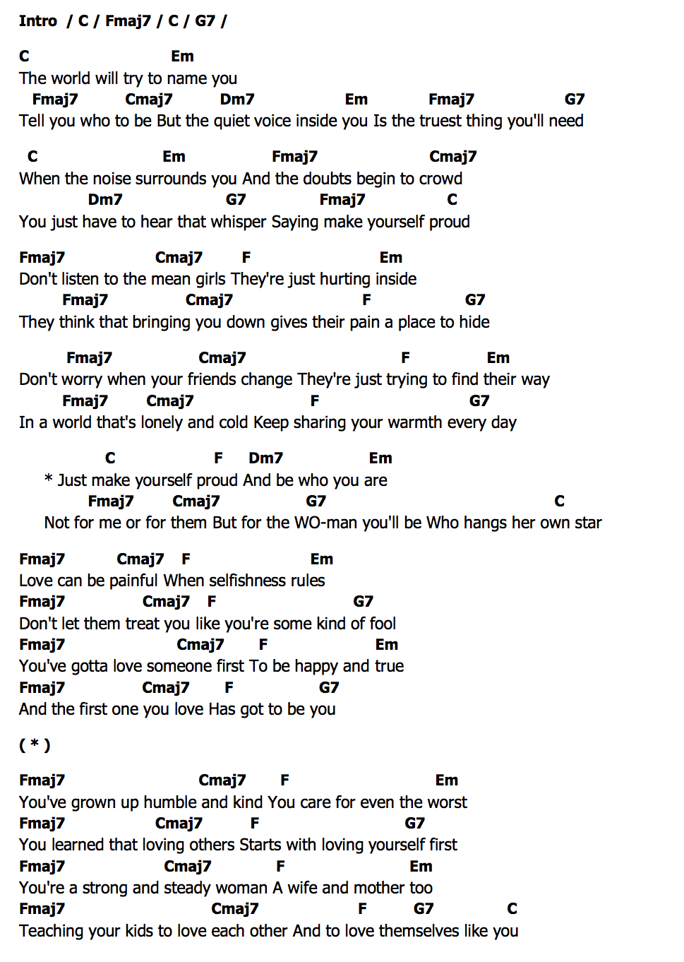 Not for me or for them But for the WO-man you'll be Who hangs her own star