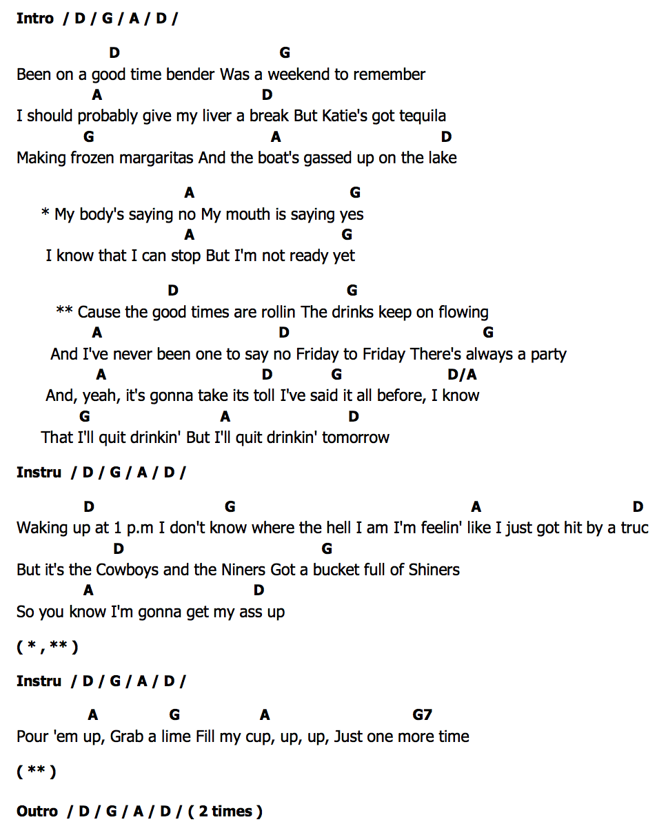 คอร์ดเพลง Quit Drinkin Tomorrow