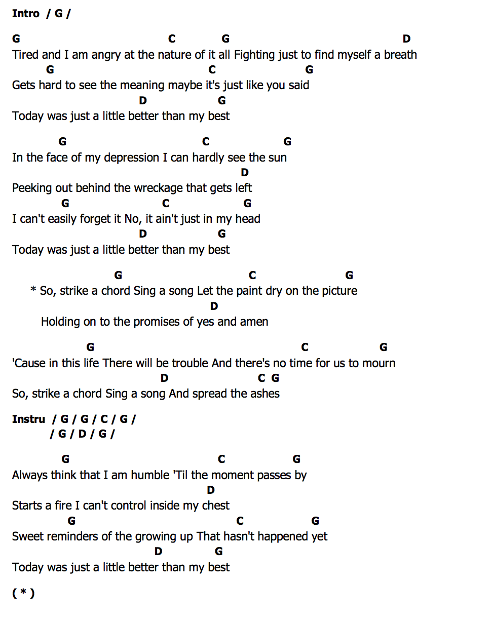 * So, strike a chord Sing a song Let the paint dry on the picture