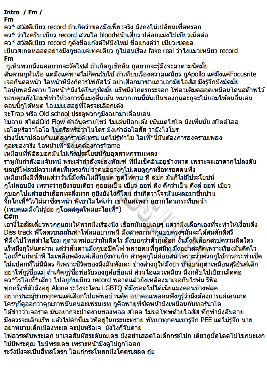 แร็พมึงกุให้แค่ผ่าน แต่ว่าสันดานมึงกูขอปิดไฟ