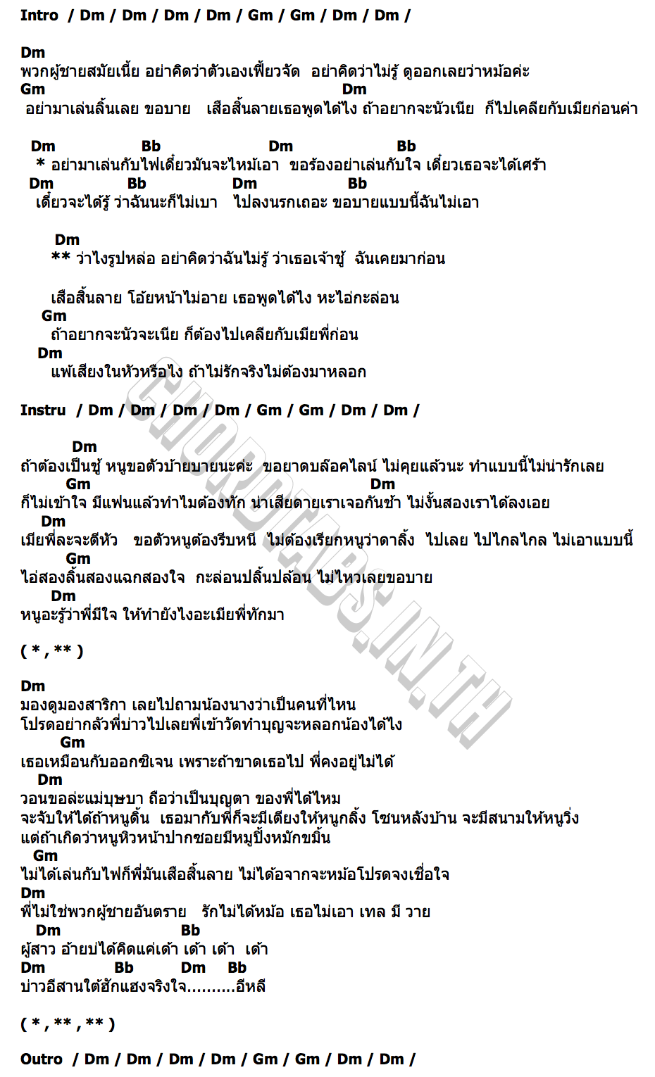 เนื้อเพลง ว่าไงรูปหล่อ สยาโม