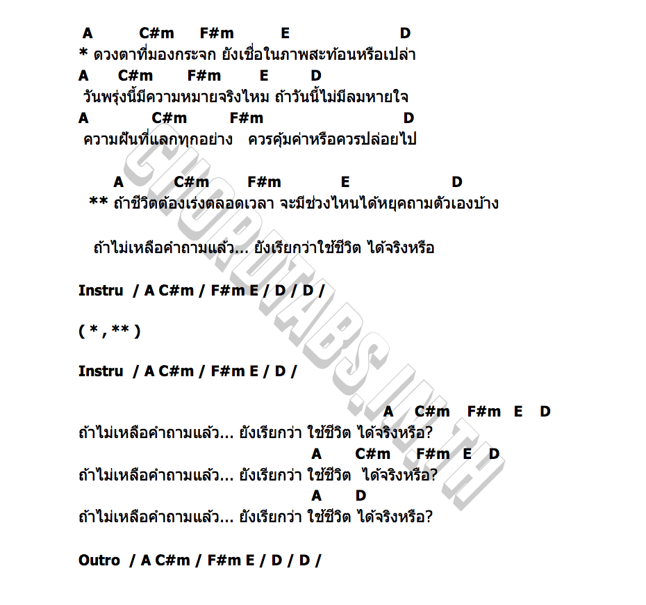 คอร์ดเพลง ภาระของเหตุผล