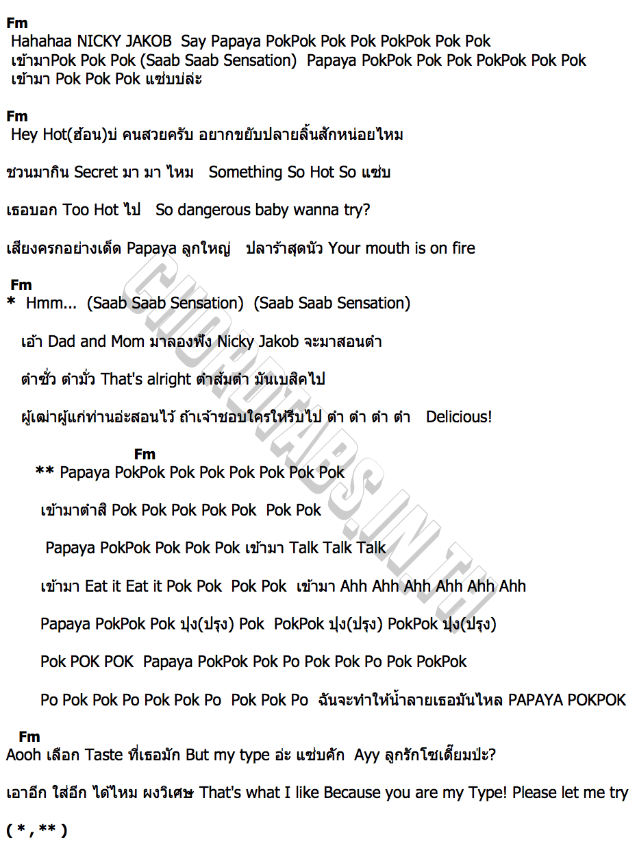 เนื้อเพลง PAPAYA POKPOK NICKY JAKOB