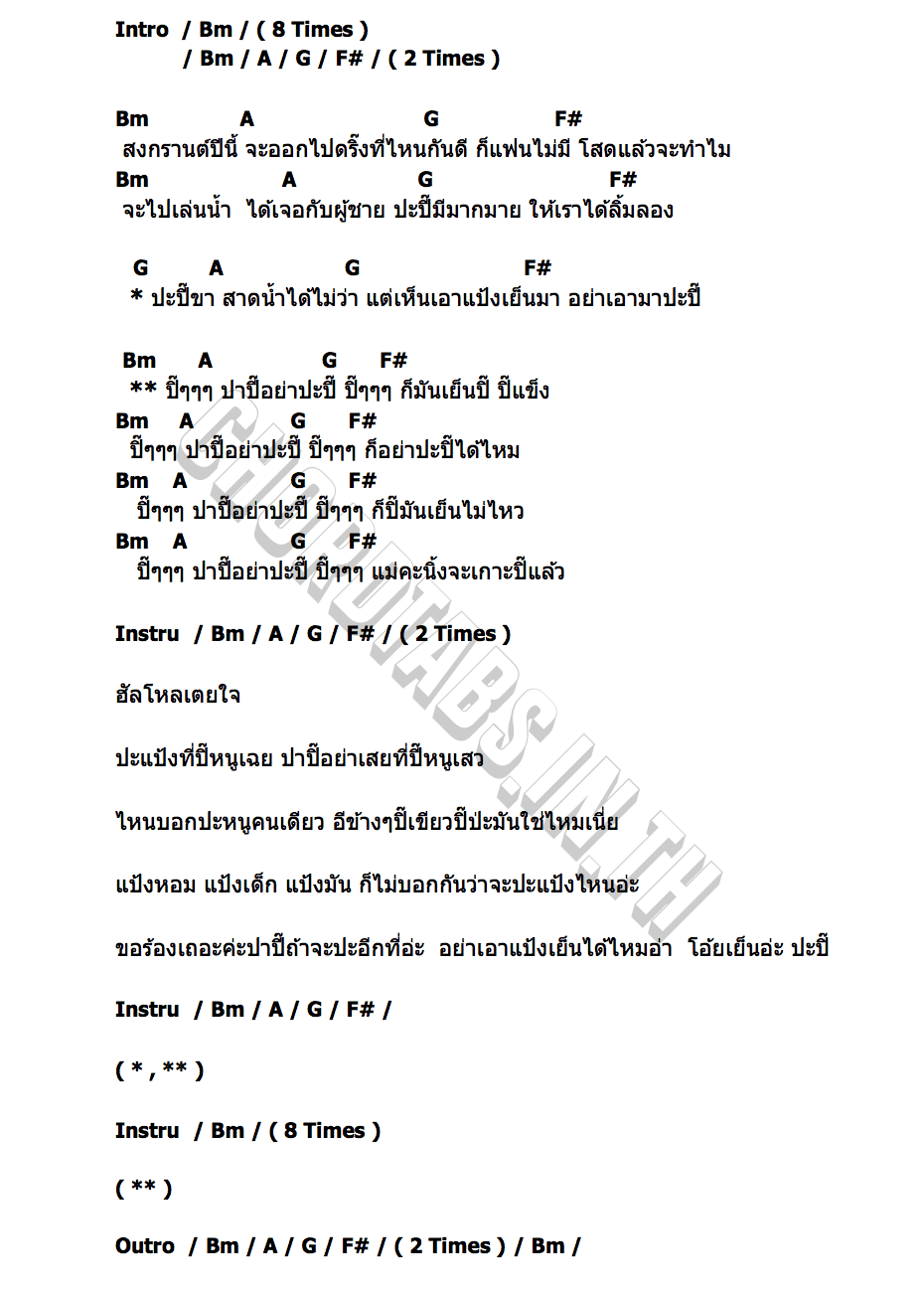 เนื้อเพลง ปะปี๊อย่า เป๊กจั๊กกะจี้