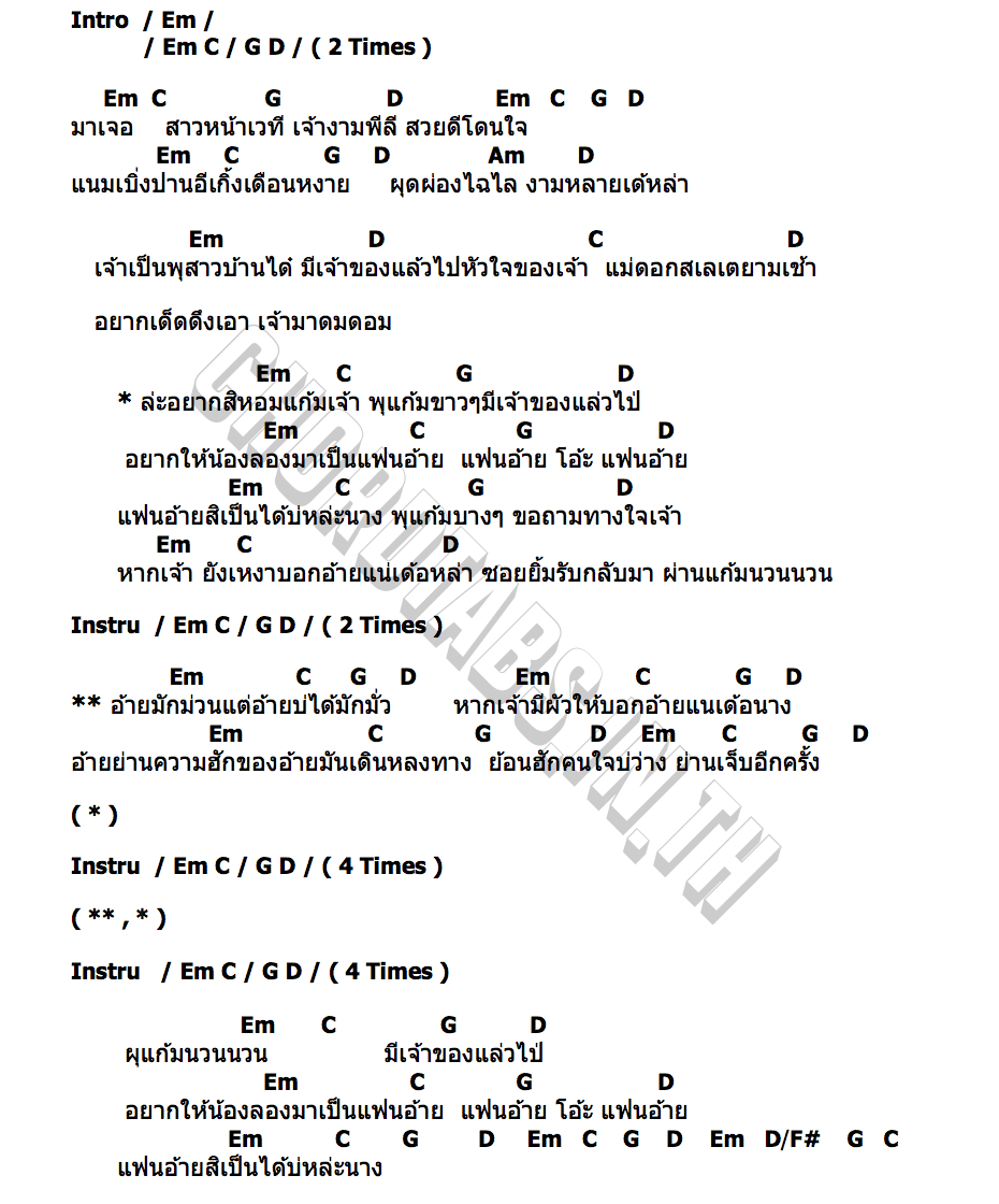 คอร์ดเพลง บ่าวอีสานสาวล้านนา