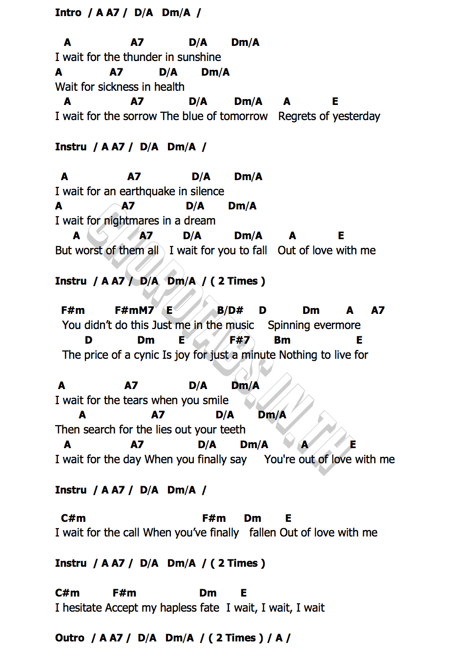 คอร์ดเพลง I Wait I Wait I Wait