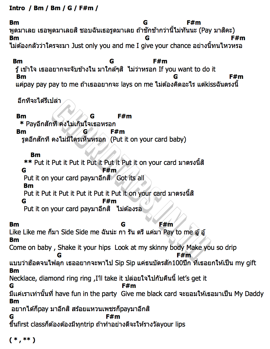 PUT ITคอร์ด | คอร์ด PUT IT PEPPER X