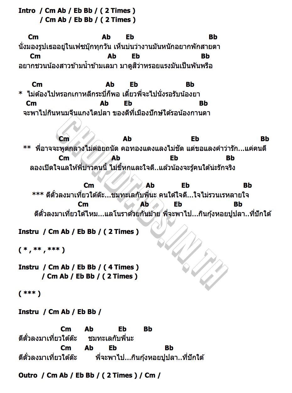 ตีตั๋วลงใต้คอร์ด | คอร์ด ตีตั๋วลงใต้ วงสหาย