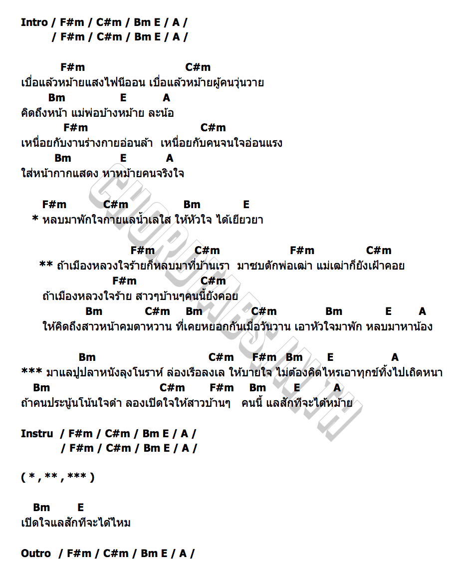 คอร์ดเพลง เมืองหลวงใจร้าย