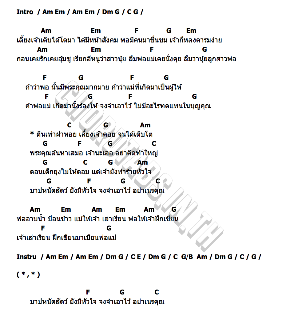 พ่ออาบน้ำ ป้อนข้าว แม่ให้เจ้า เล่าเรียน